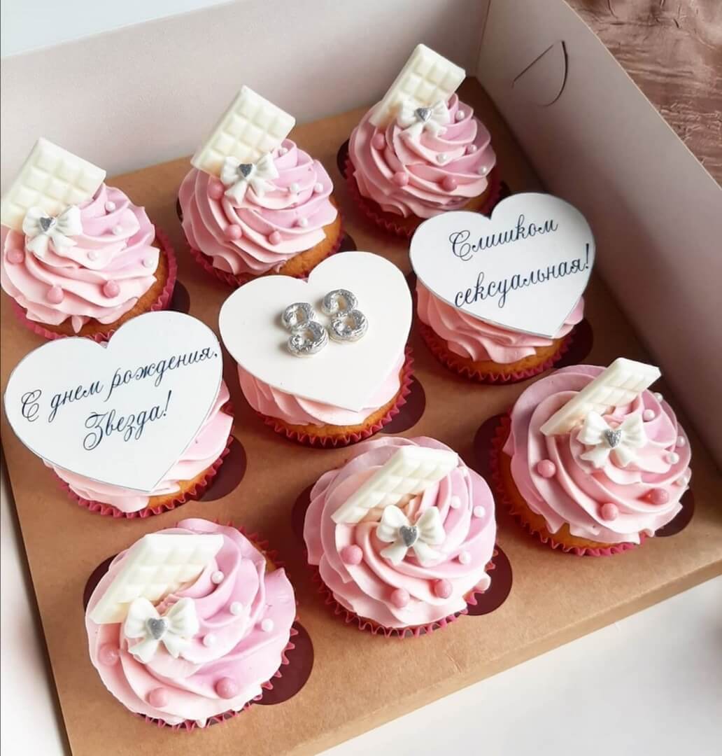Вместо торта любимой подруге можно подарить и игривые нежные капкейки с любыми пожеланиями...