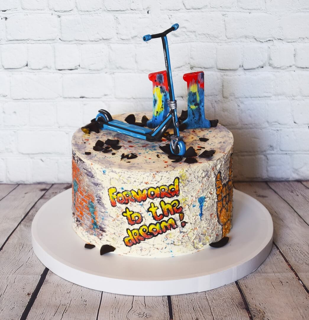 Волна покатушек на самокатах захватила сердца взрослых и детей! Так подарите же тематических тортик любителям данного вида транспорта ;)